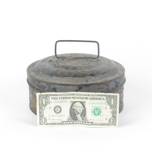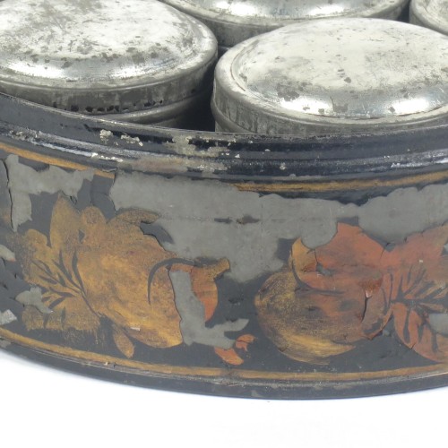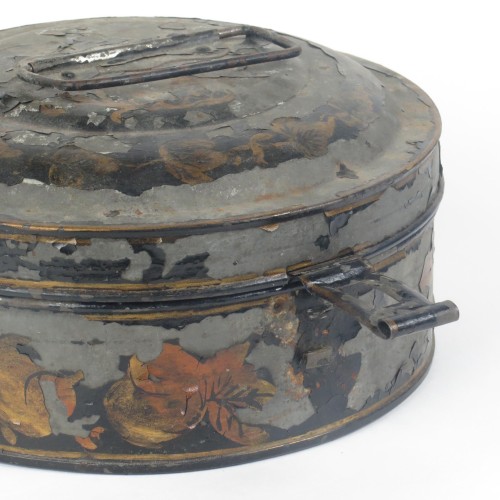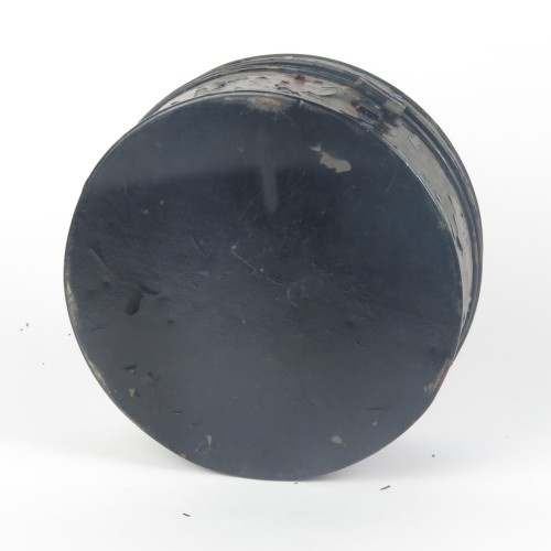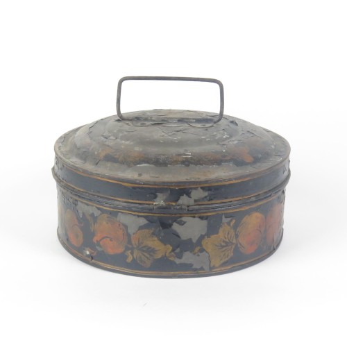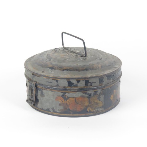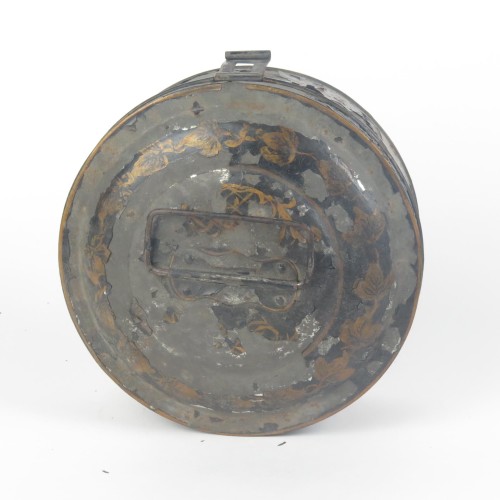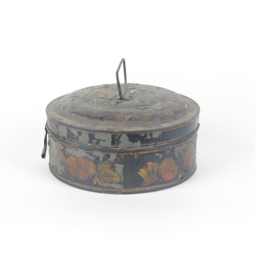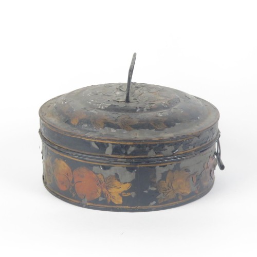 Antique Spice Box Tole Painted Toleware Black Round Primitive Metal 19th c